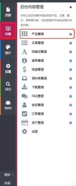 3. 進(jìn)入網(wǎng)站后臺(tái),選擇左側(cè)內(nèi)容板塊的產(chǎn)品管理;