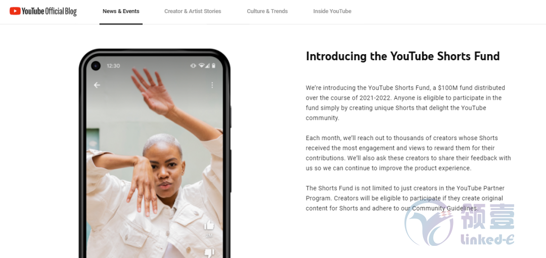 2021年5月12日,全球最大視頻網(wǎng)站YouTube于周二宣布,將推出一只規(guī)模為1億美元的創(chuàng)作者基金,激勵在其新短視頻功能Shorts上制作熱門視頻的內(nèi)容創(chuàng)作者,挑戰(zhàn)短視頻領頭羊TikTok。